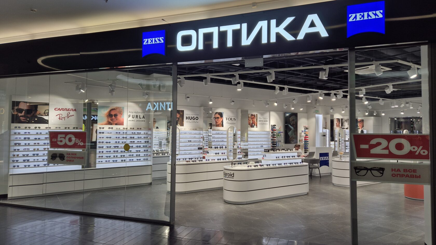В торгово-развлекательном центре «Жемчужная Плаза» начал работу новый арендатор — салон оптики ZEISS. Это сеть премиум-класса, которая объединяет немецкое качество Carl Zeiss и итальянский дизайн. В салоне представлен широкий выбор оправ и солнцезащитных очков известных мировых брендов, среди которых Caroline Abram, Blumarine, Furla, Ray-Ban, Talla, Trussardi, Gucci, David Beckham и многие другие.