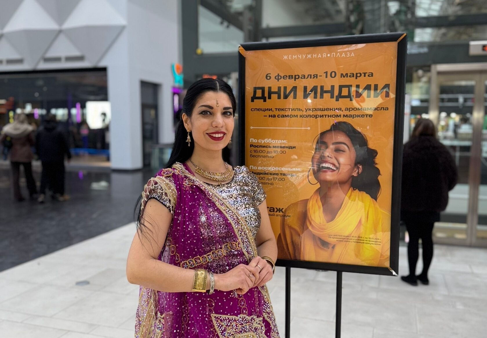 Дополнительно по выходным для гостей организована культурная программа: по субботам проходят бесплатные мастер-классы по мехенди, по воскресеньям — выступления с национальными танцами. Мы рады, что ярмарка «Дни Индии» стала частью событийной программы ТРЦ «Жемчужная Плаза», и уверены, что она привлечёт внимание посетителей и создаст атмосферу яркого культурного праздника.